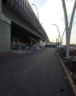 Здесь уже уложили свежий асфальт, сейчас обустраивают переход от дублера.